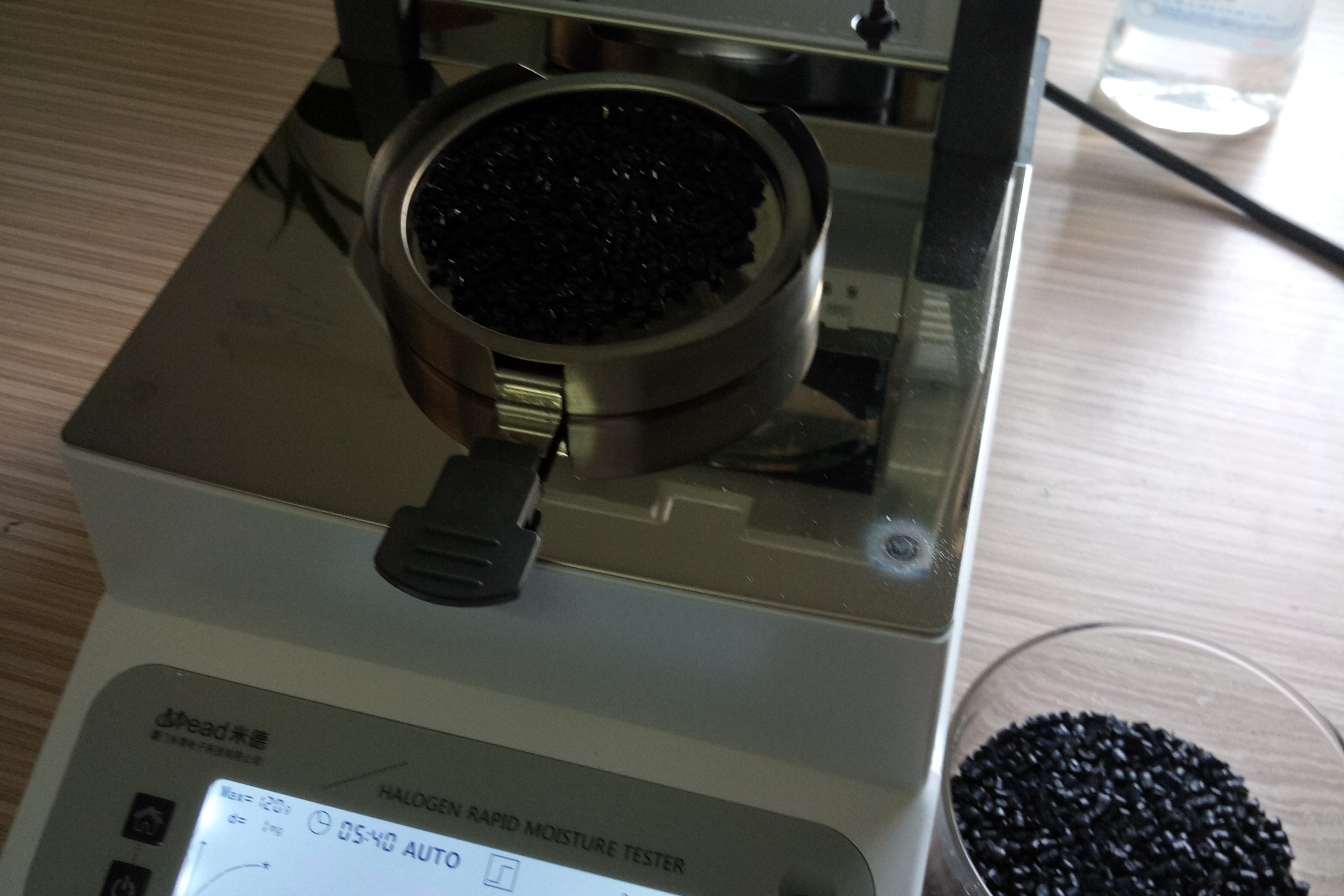 再生尼龍水分測(cè)試儀使用方法?? 測(cè)試再生尼龍顆粒:倒出8克左右再生尼龍料顆粒倒在不銹鋼托盤中,為了使測(cè)試過程中…